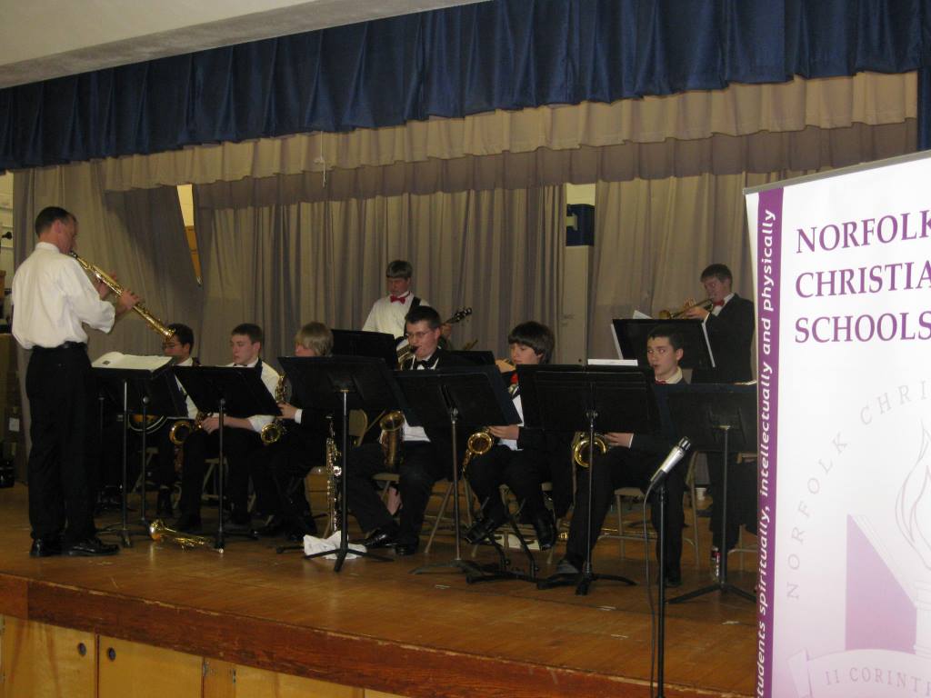Norfolk Christian School’s High School Ambassador Jazz Band performed a swingin’ Christmas program for the December 12 Suburban Acres Civic League holiday meeting. Under the direction of Doug Earlenbaugh, the 18-piece ensemble entertained more than 50 Suburban Acres residents and guests. Go Ambassadors!